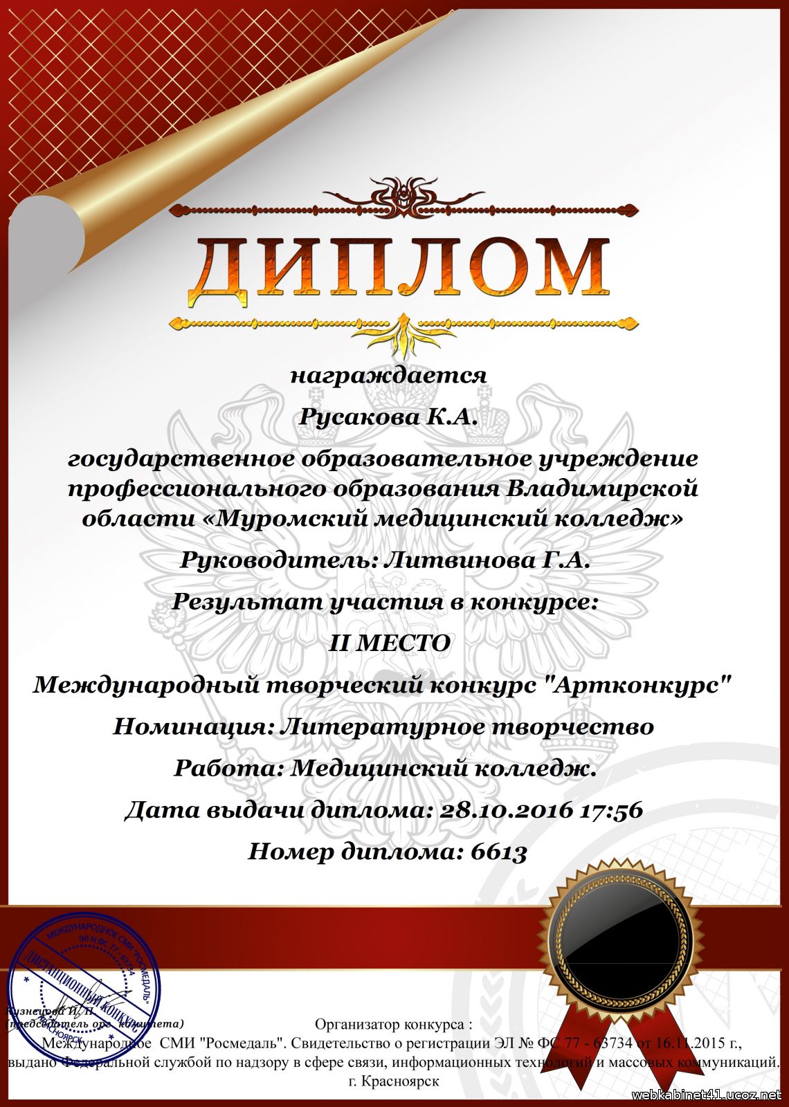 Грамота Русаковой К.